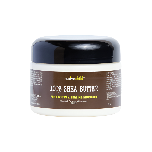 Nativechild 100% Shea Butter contains oleic acid, a saturated fatty acid, which is highly compatible with the sebum naturally produced by our skin. It is an excellent moisture sealant & soothes a dry scalp